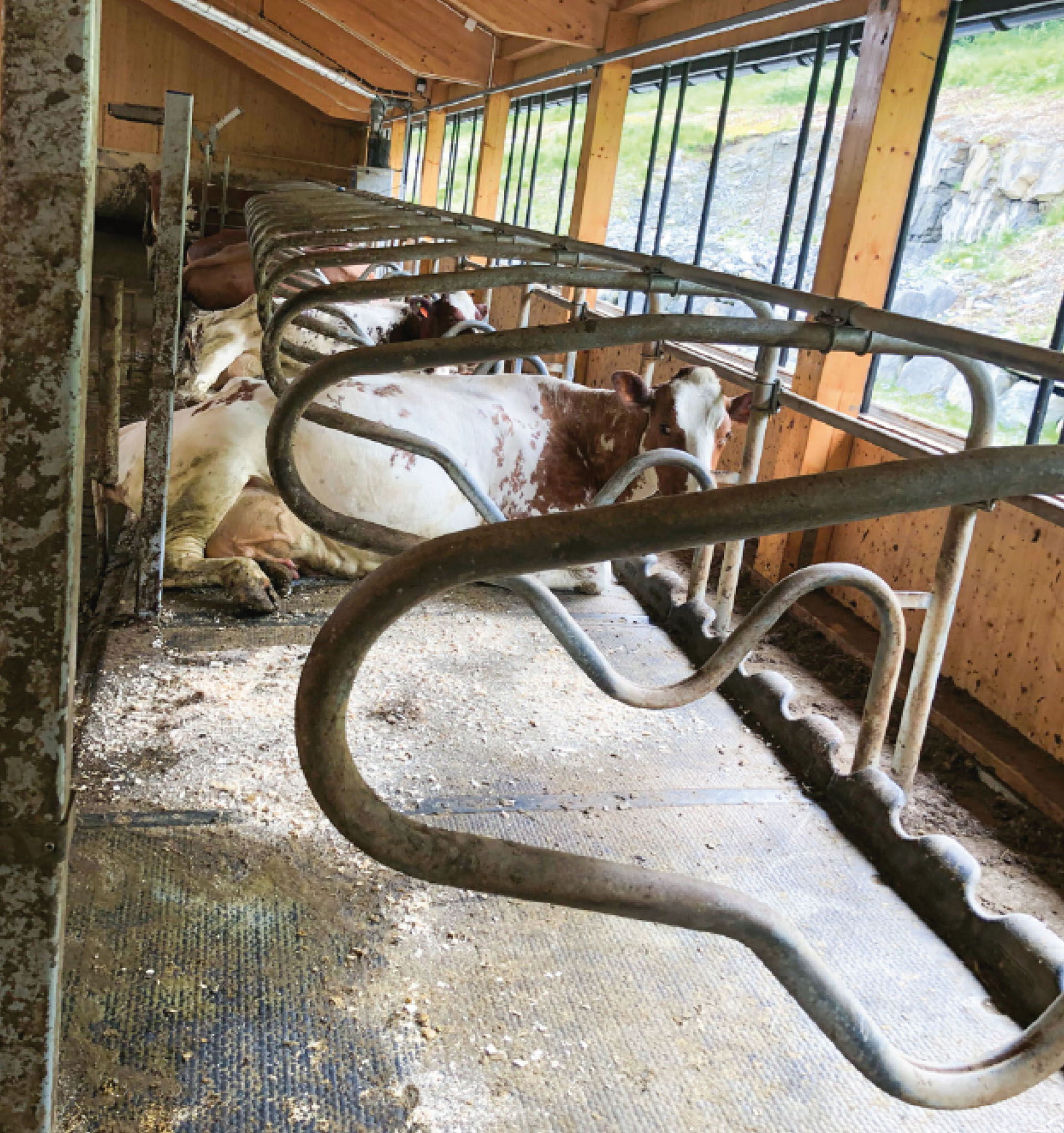 Eine liggjebåsrekkja er ut mot yttervegg, og her er reint, fint og god luftkvalitet for dyra.