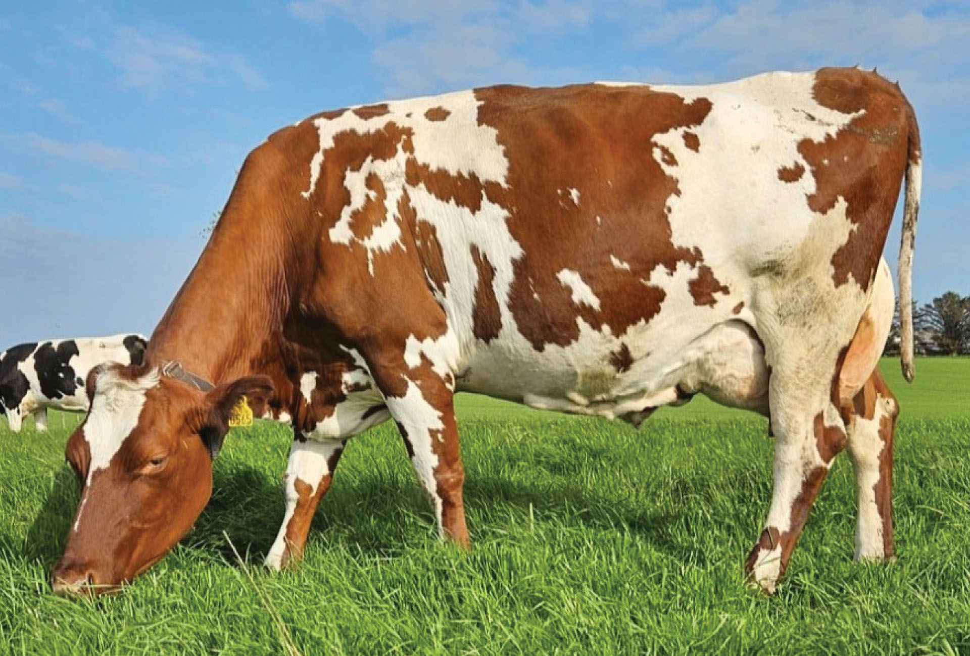 Eksempel på bilde som er tatt av ei ku ute på beite. Kua 565 hos Live og Tommy Horpestad på Bryne var vinneren av fineste NRF-ku i klasse 3 i fjorårets digitale ku-utstilling.