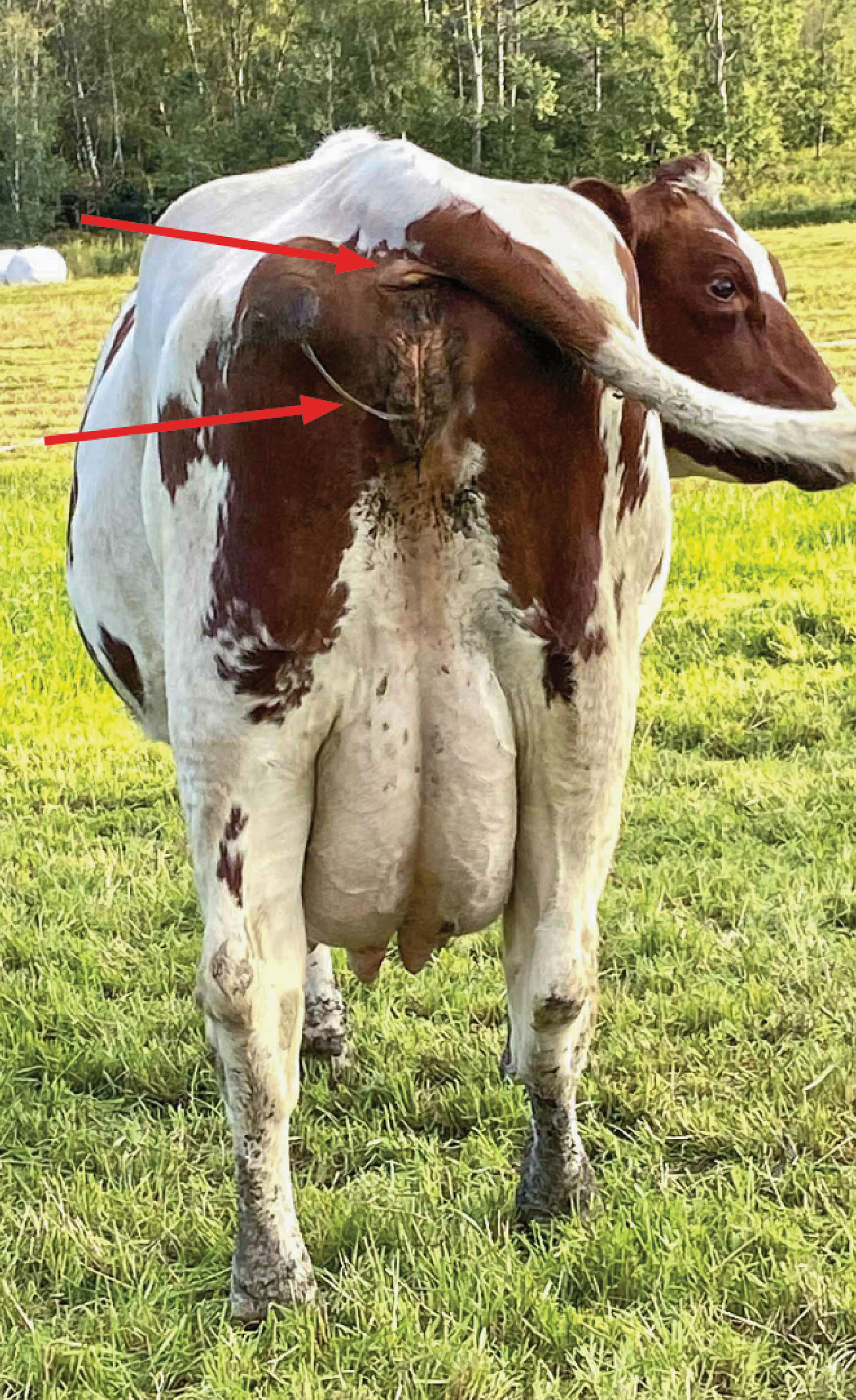Same ku som på bildet på forrige side. Syner heilt nedsleppt kalvingssene.