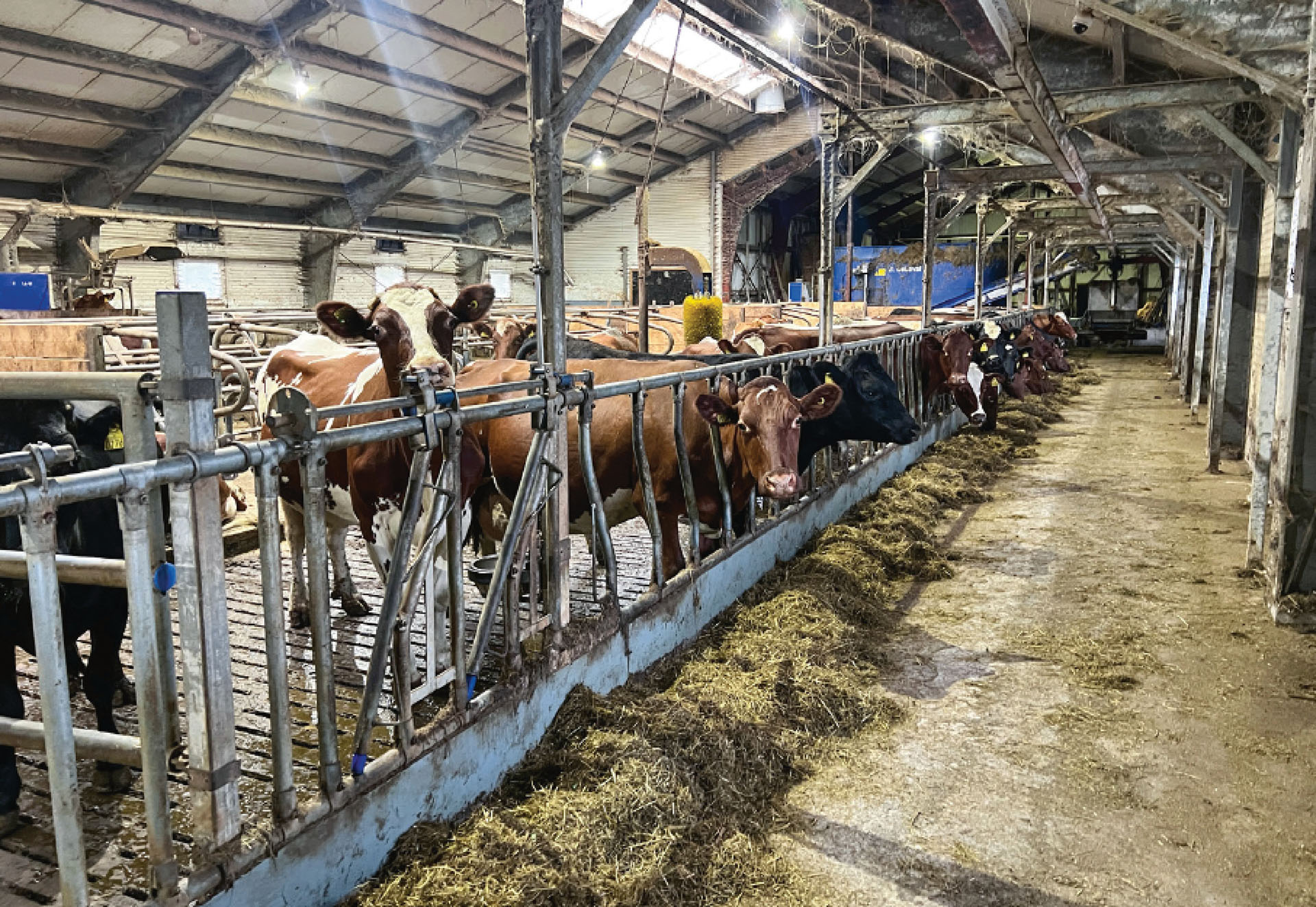 Fjøset ble tatt i bruk i 2014. Med 47 liggebåser og melkerobot kostet det da 7 millioner. I enden er plansiloer bygd om til romslig fôrsentral.
