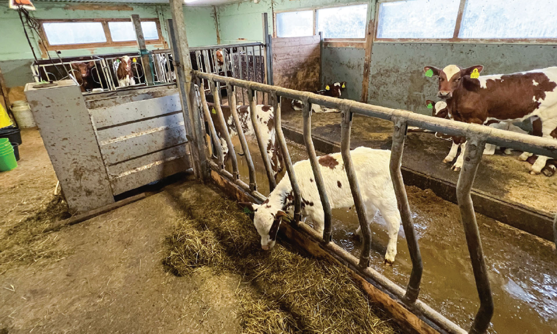 Kalvehelsa har vært god, og det sluntres ikke med råmelksrutinene. Nok råmelk tidlig nok er prioritert, og det spares ikke på melka fram til avvenning. Kalvene er i enkeltboks til de flyttes over i storbinge med melkefôringsautomat. Tidspunktet avhenger litt av plassen. Beate forteller at de en måned hadde 30 kalvinger, og da blir det trangt om plassen i kalveavdelingen. Bingen med melkeautomat har plass til 12 kalver, men kan utvides. Det brukes melkeerstatning i automaten og kalvene får nesten fri tilgang med et tak på 12 liter i døgnet. Med godt renhold og ettersyn har ikke Olav opplevd problemer med automaten. Eneste helseutfordring i besetningen har vært noe melkefeber enkelte år, og det er jo en kjent sak at risikoen for det øker med alderen på kyrne.