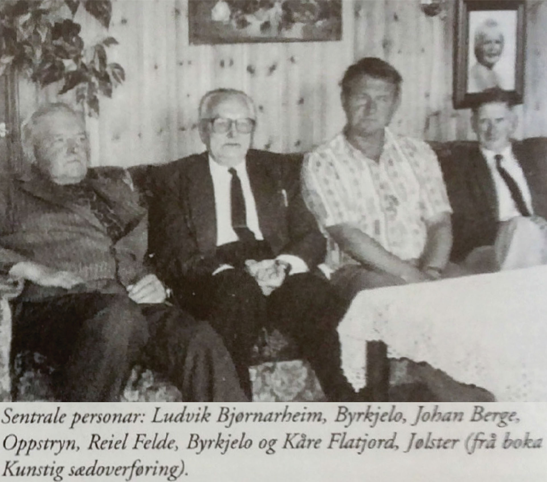 Sentrale personar: Ludvik Bjørnarheim, Byrkjelo, Johan Berge, Oppstryn, Reiel Felde, Byrkjelo og Kåre Flatjord, Jølster (frå boka Kunstig sædoverføring).