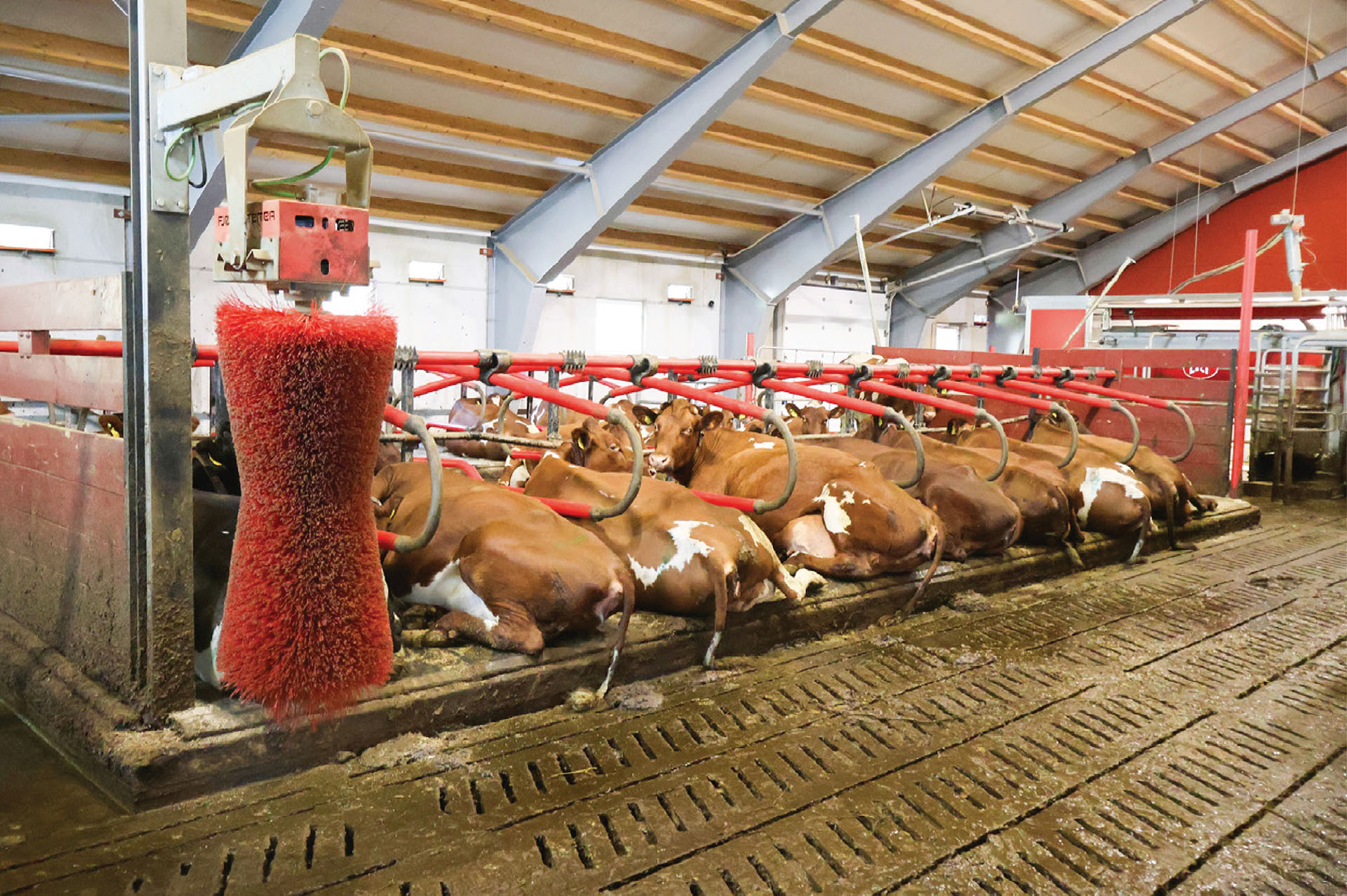 Det nye løsdriftsfjøset er lyst og trivelig, med liggebåser og kubørster.