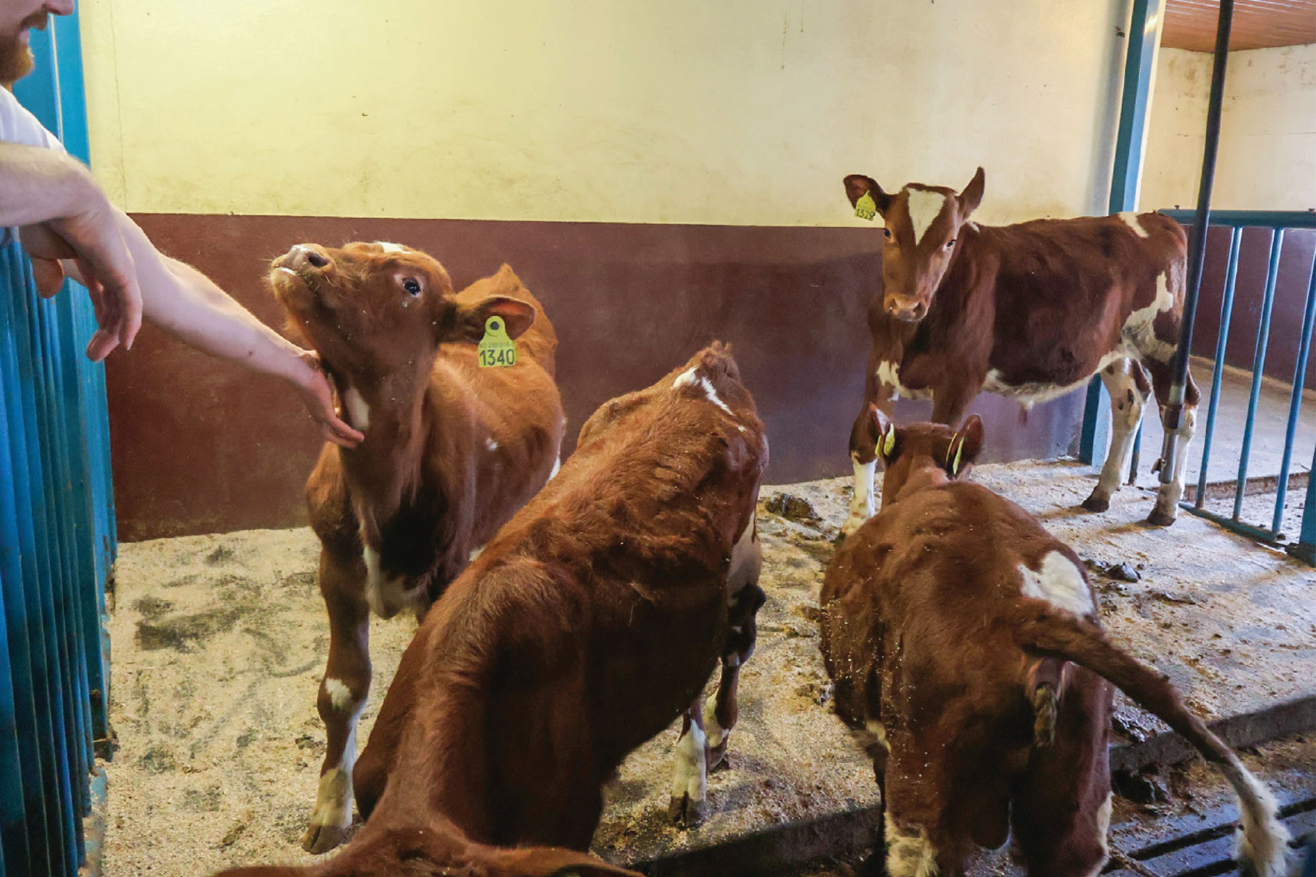 Anders legger stor vekt på kontakt med kalvene. – Vi tilbringer mye tid i fjøset, rundt seks timer per dag. Da går vi ofte bort til kalvene, prater og koser med dem. Han skjønner at dette ikke er mulig i større besetninger, men mener kalvene blir veldig trygge. Han tror heller ikke at ku-kalv-samvær ville passet i fjøset hans når det ikke er bygd for det. – Dyrevelferd er veldig viktig for meg, men ku-kalv-samvær gir ikke nødvendigvis bedre dyrevelferd. Jeg tror kostnaden blir for stor, og fordelen for liten, sammenlignet med hvis man selv steller godt med kalven.