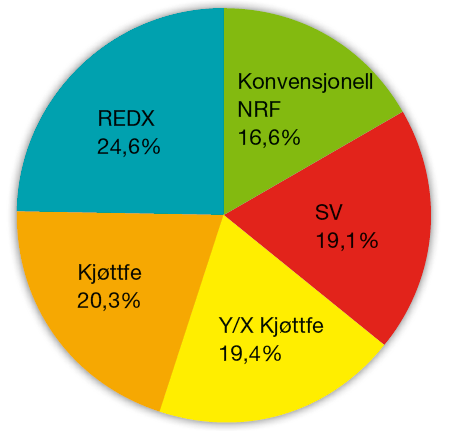 Trenden i Genos sædsalg er at konvensjonell NRF-sæd går tilbake mens REDX, kjøttfesæd og SpermVital øker.