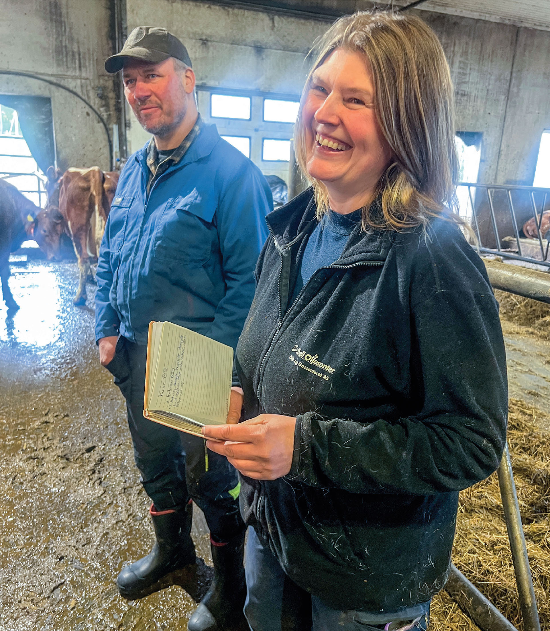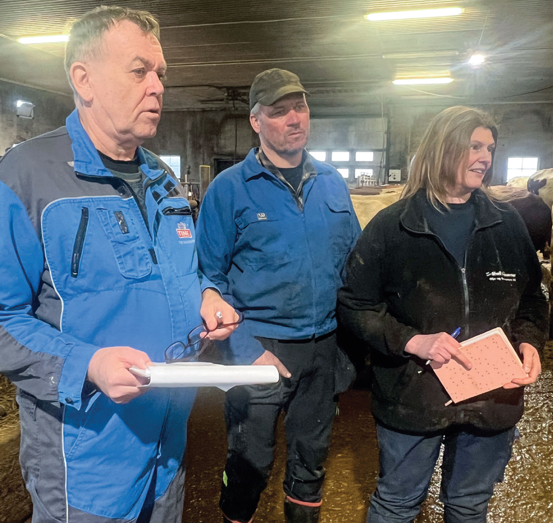 Kristin og Jens Håkon Bjerke synes gjennomgangen av kyr og kviger med avlsrådgiver Njål Vestøl er nyttig og spennende.