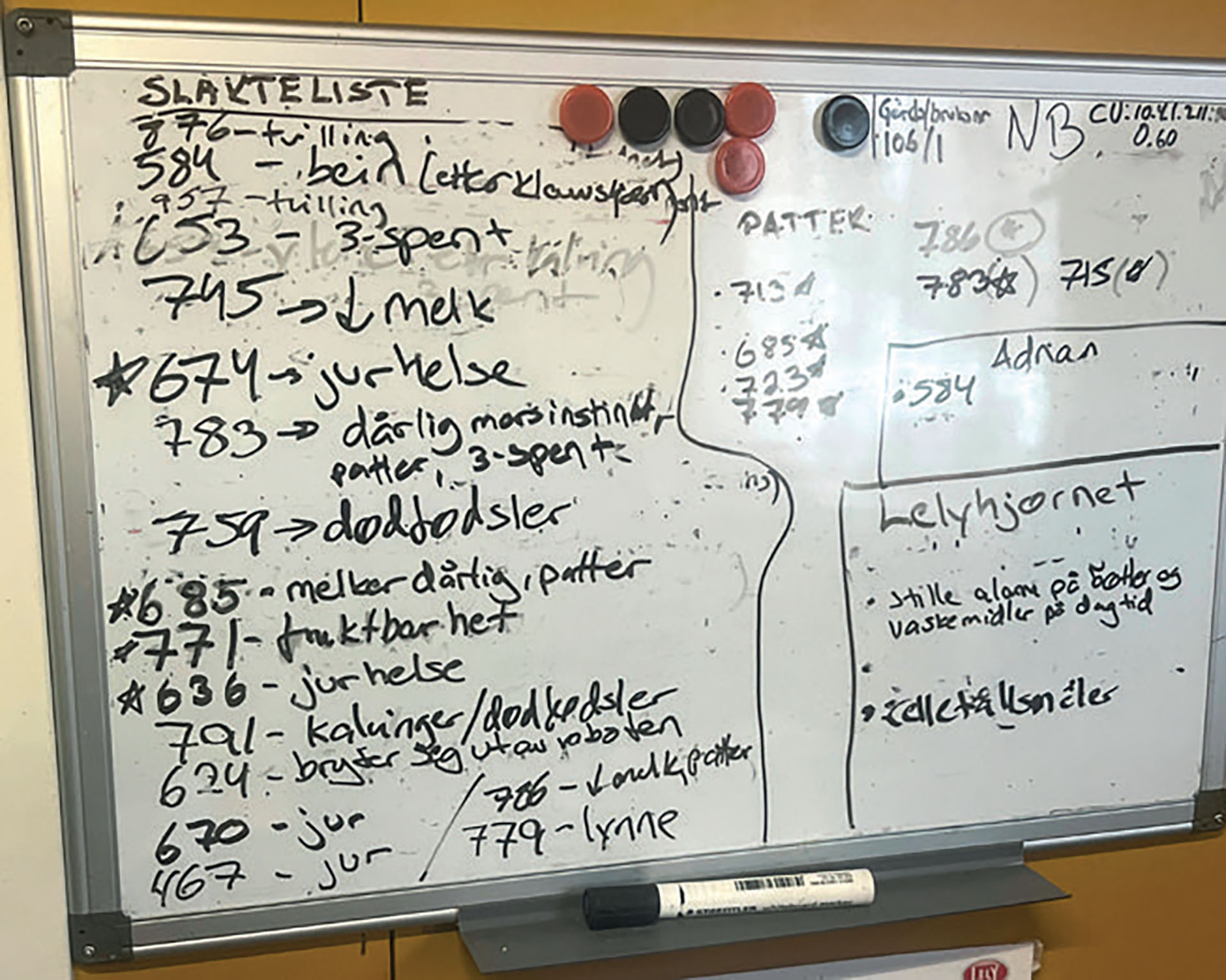 Etter fjøsrunden går slaktelista igjennom. Nå er det litt mange kyr i besetningen og derfor litt lenger slakteliste enn vanlig.