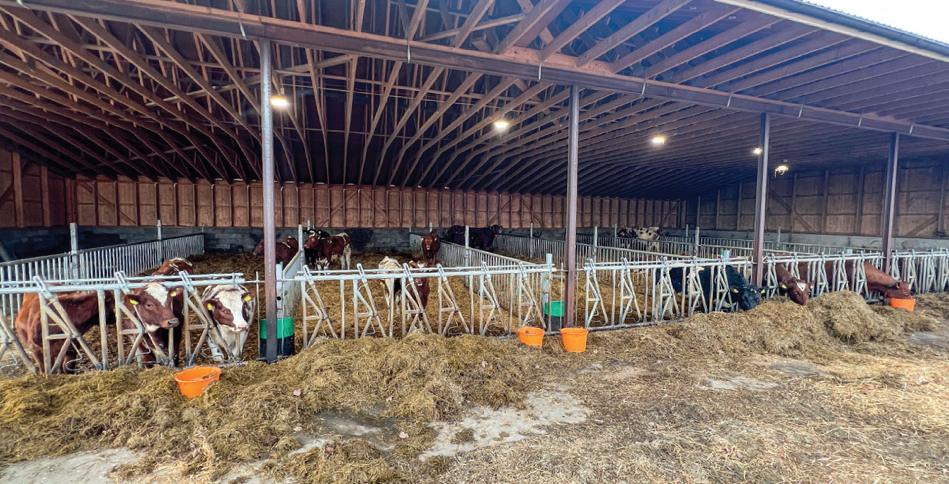 Åpent tallefjøs til kviger bygd for halvannet år siden. Kyrne kalver også her.