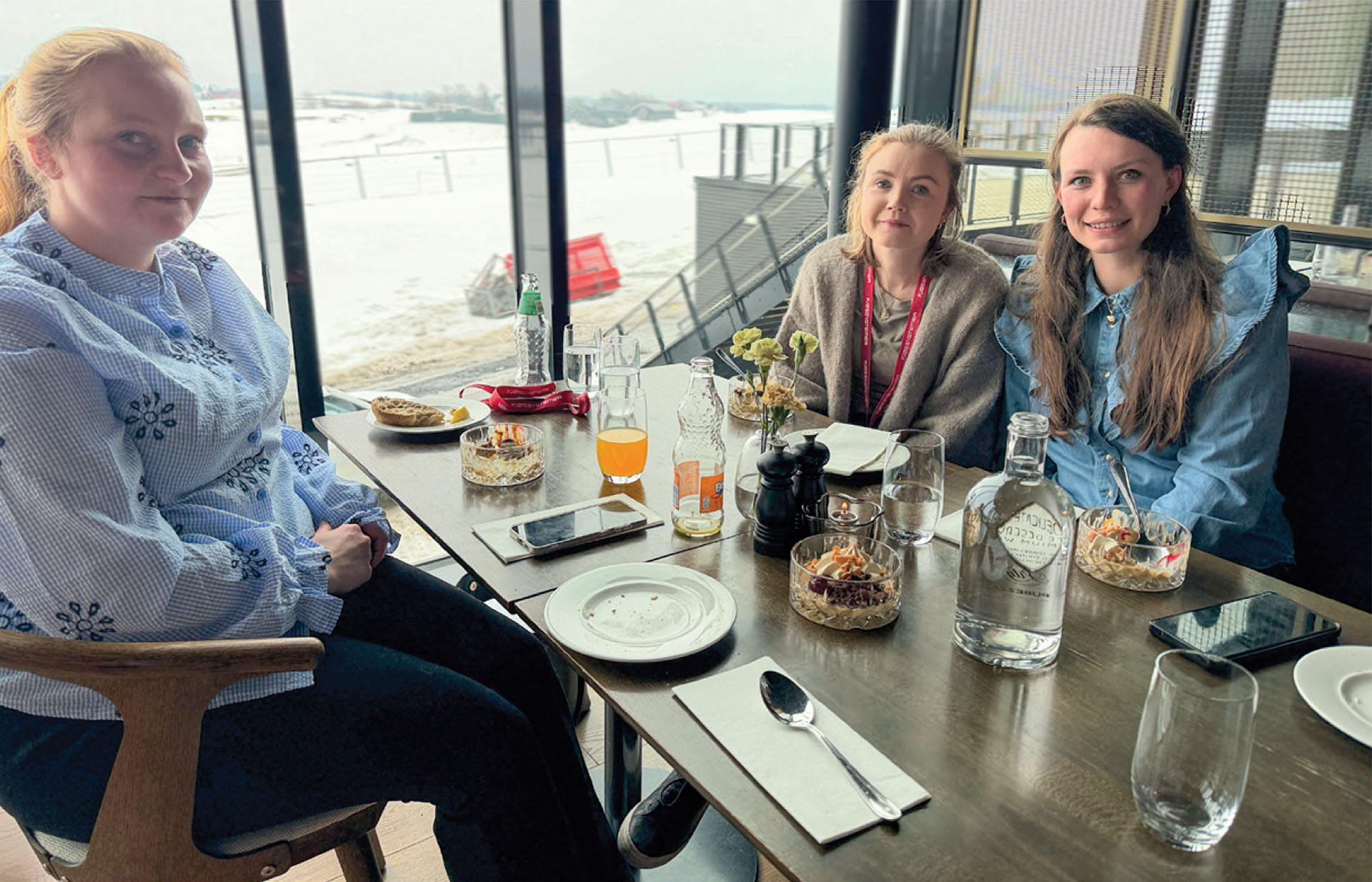 Mellom foredragene møtte vi de tre unge melkebøndene Ida Beate Kampesveen fra Homb Gård på Dokka, Tone Kvisberg fra Aspås Gård i Angvik og Ingelin Slåtsveen- Lund fra Slåtsveen Gård på Kolbu som koste seg med en felles lunsj. De fremhever konferansen som en viktig møteplass.