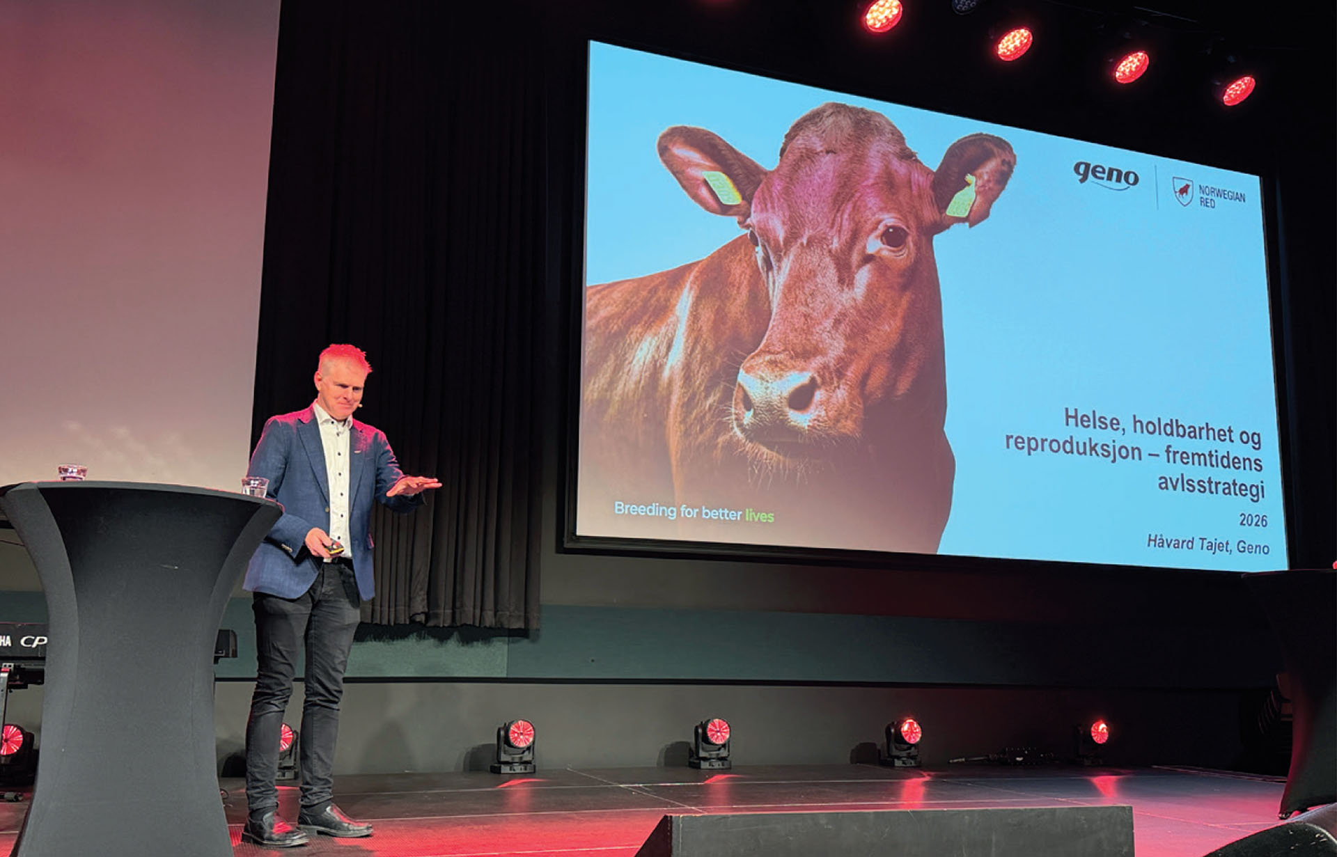 Avlssjef Håvard Tajet fra Geno deltok med foredraget: Helse, holdbarhet og reproduksjon - fremtidens avlsstrategi.