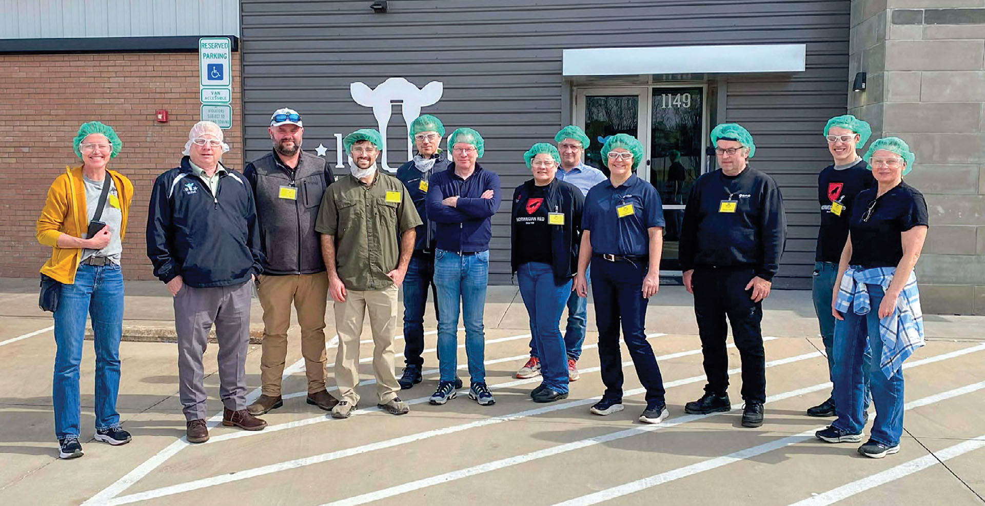 Styret på meieribesøk hos 1836 Farms som opplever eventyrlig økning i etterspørselen etter økologisk smaksatt mjølk på glassflasker. Fra venstre Eli Hveem Krogsti, meieribestyreren, Josh Hoffmann, Matthew Hoffmann, Lars Egil Hognes, Ton van de Goor, Anne Margrethe Solheim Stormo, Tommy Skretting, Elisabeth Gjems, Idar Dombestein, Vegard Smenes, Margrete Nøkleby.