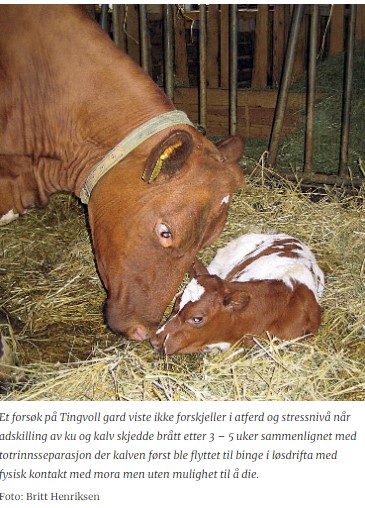 Opplegget på Ellinggård er en kombinasjonsløsning der ku og kalv får gå sammen i 14 dager. Etter de 14 dagene går kalvene med ammetanter.
